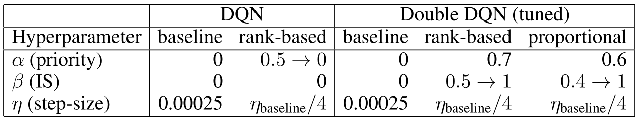 Rank-based Prioritization이라면 $\alpha$는 0.7, $\beta$는 0.5 -> 1.0으로