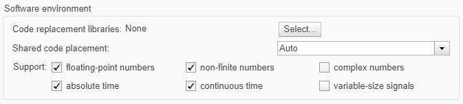 Simulink 모델 -> / -> Configuration Parameter -> Code Gen. -> Interface -> / -> Software Environment