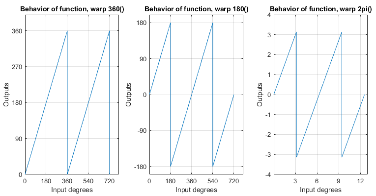 title('Behavior of function, warp 2pi()');