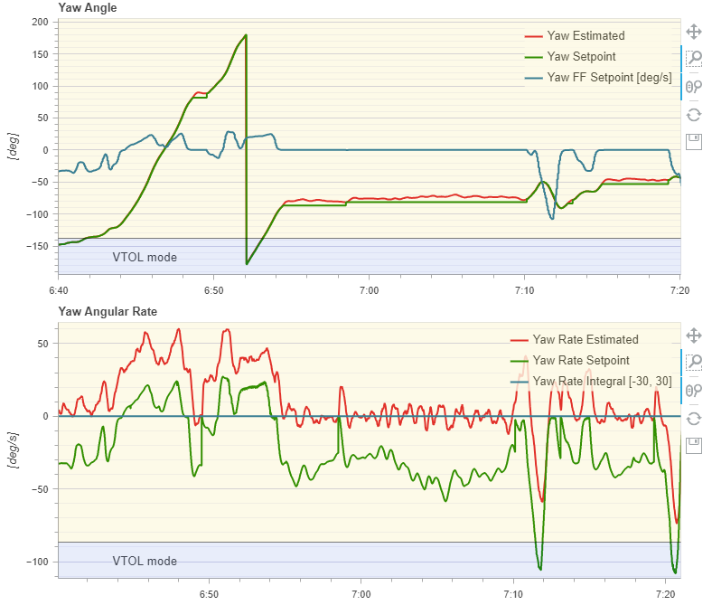 Yawrate PI는 P 0.2->0.4, I 0.1->0.2, Yaw P 0.8->5으로 올린 제어 특성이다.
