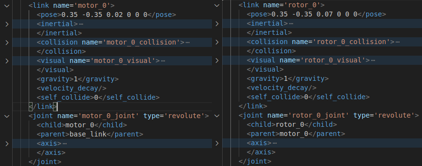- Links and Joints (for geometry. motor, rotor, wing, control surfaces)