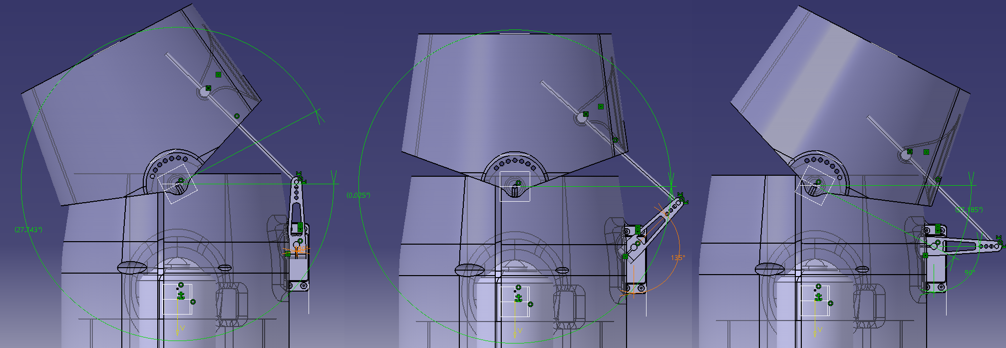 - 노즐 축 주변으로 서보 암과 링키지를 할 경우, 덕트 노즐이 뒤틀리는 문제가 있었다. 그래서 아예 옆면에다가 링키지를 만들어주었다.