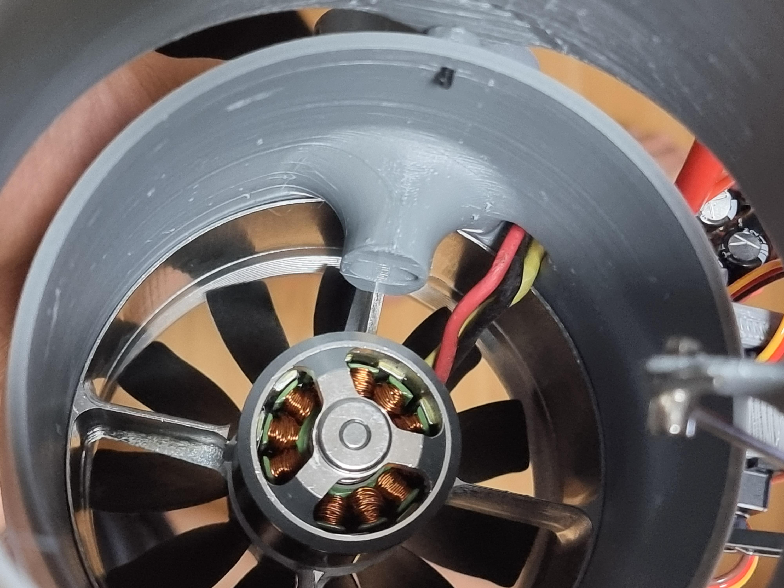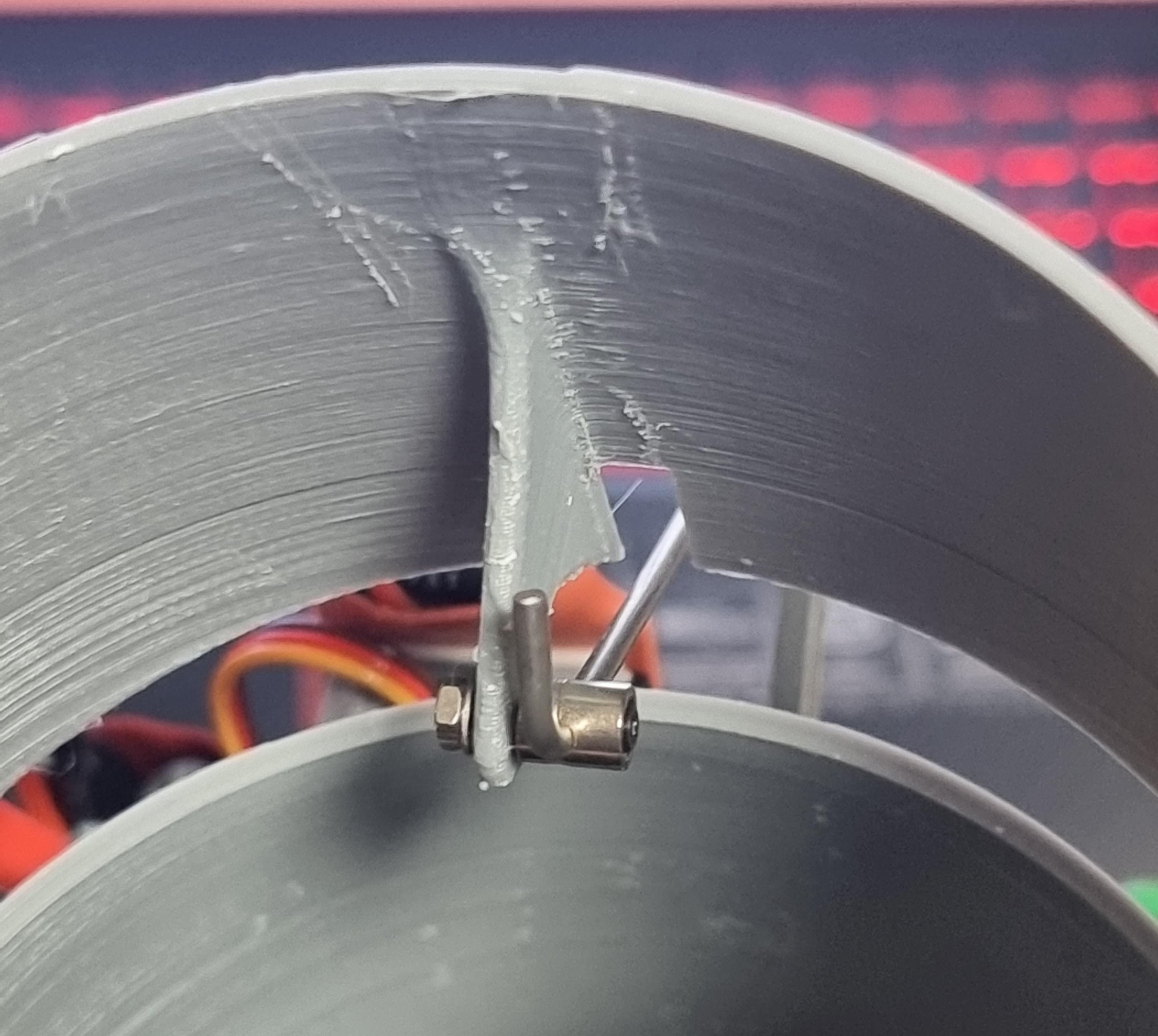 아래 사진처럼 틸팅 축에 스테이터가 위치하도록 하고, 그 위치에 홈을 두어서 스테이터와 덕트 링이 낄 수 있도록 했다.