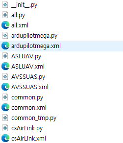 예시로 보면 해당 위치에는 다음과 같이 MAVLink 메시지의 정의 파일 *.xml 과 메시지 정의를 파이썬에서 쓸 수 있도록 만들어둔 라이브러리 파일인 *.py 파일이 위치한다.