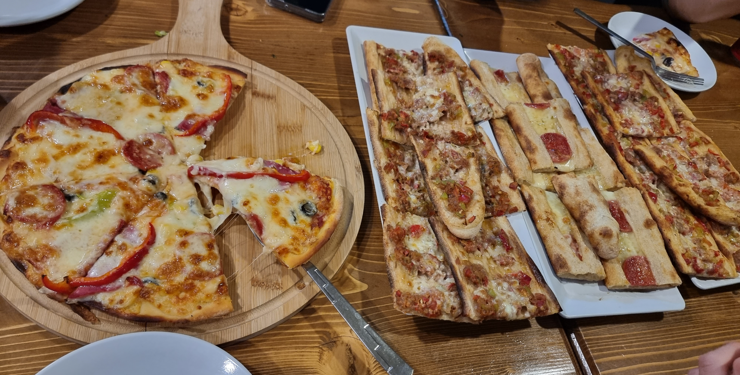 좌측은 그냥 피자이고, 우측의 긴 빵에 구운 것이 Pide 피데라고 한다.