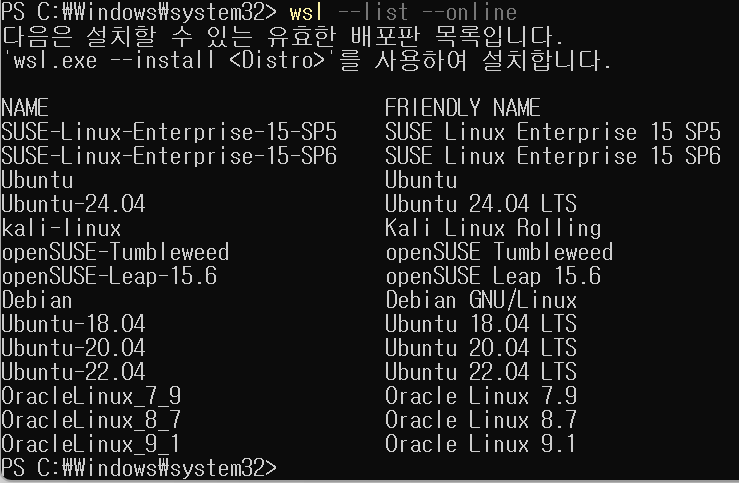 wsl --list --online