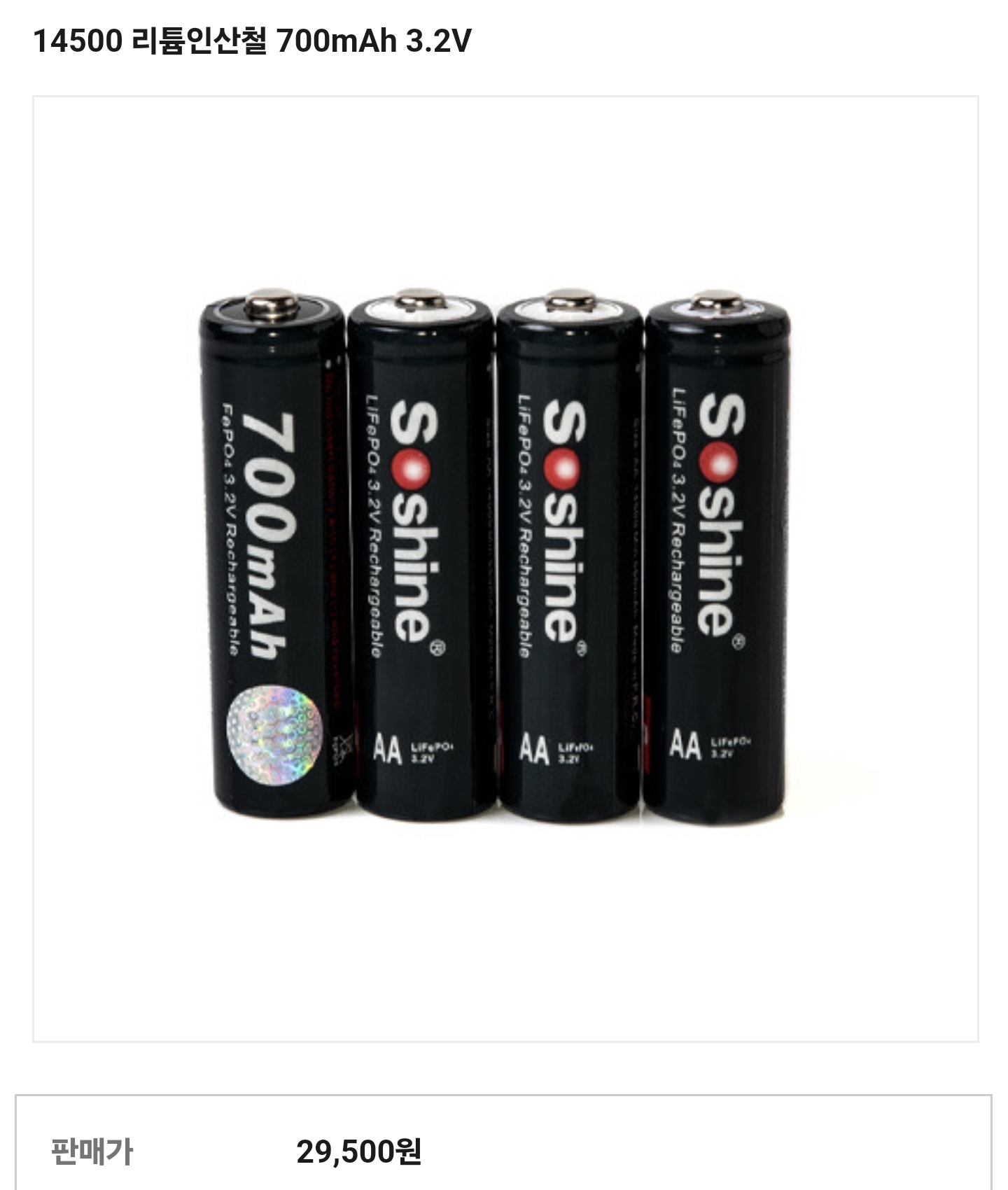 이전에 제품을 잘못 봤는지, 무지 비싸서 리튬인산철을 찾긴 했다. 그리고 니켈수소는 메모리효과가 덜하지만, 충방전 횟수가 500회라, 약 2년 정도 쓰면 더 못쓰게 되도록 되어있다.
