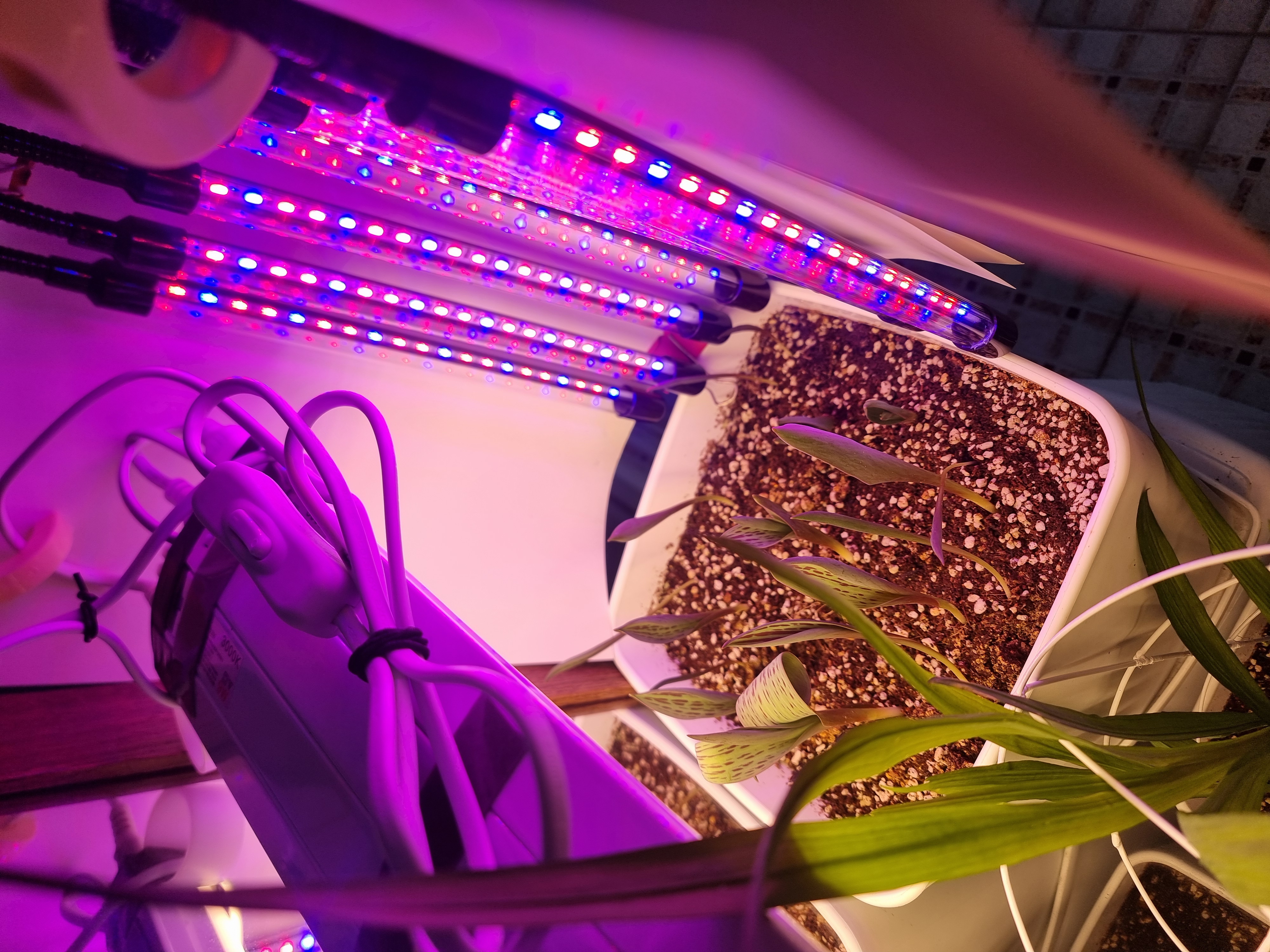 번뜩 떠올라서 웃자람을 해결하고 꽃을 보기 위해 인공 조명을 세팅하기 시작했다.